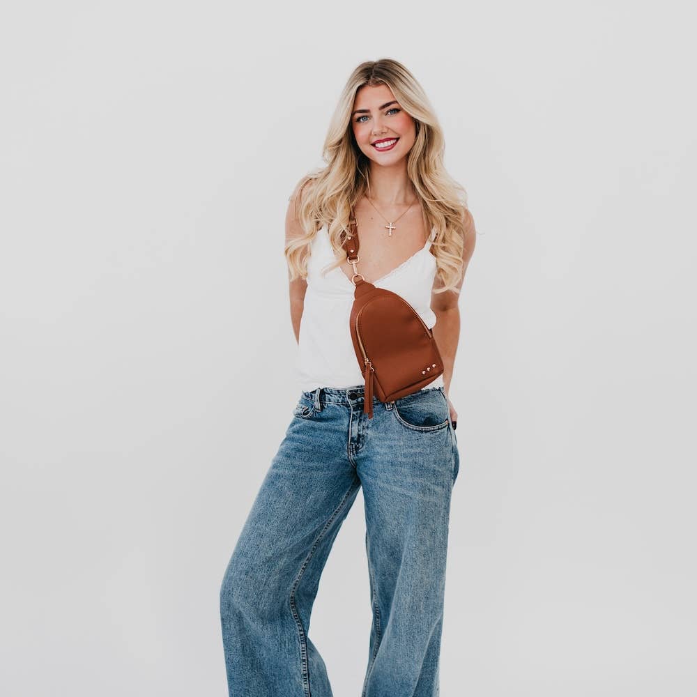The Adventure Awaits Sling Bag is another addition to our 3 Sisters Collection! This collection is inspired by the unbreakable bond shared between the owner/founder of Pretty Simple and her 2 sisters. These bags are marked with three signature studs and will complete outfits, catch eyes, and remind wearers of the incredible connection to their own sisters, whether through blood or by choice. You can see it in our inspiration and mission.