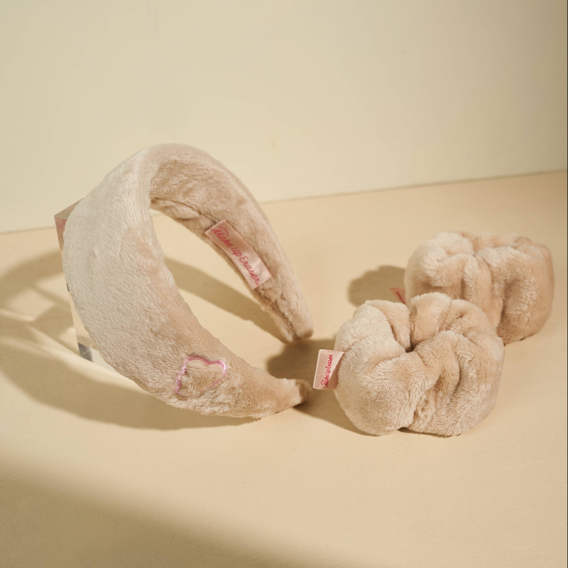Wristbands are ultra-absorbent & designed to stop the flow of water down your arms as you do your AM/PM skincare routine. No more wet counters, no more wet sleeves! Fluffy headband keeps hair pulled back & out of your face