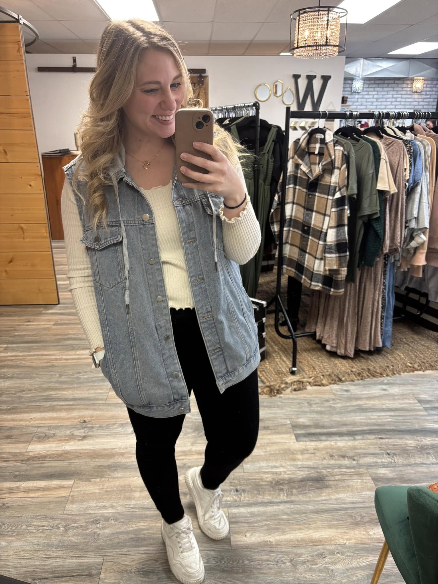 Janie Jean Vest w/ Detachable Hood - Light Wash