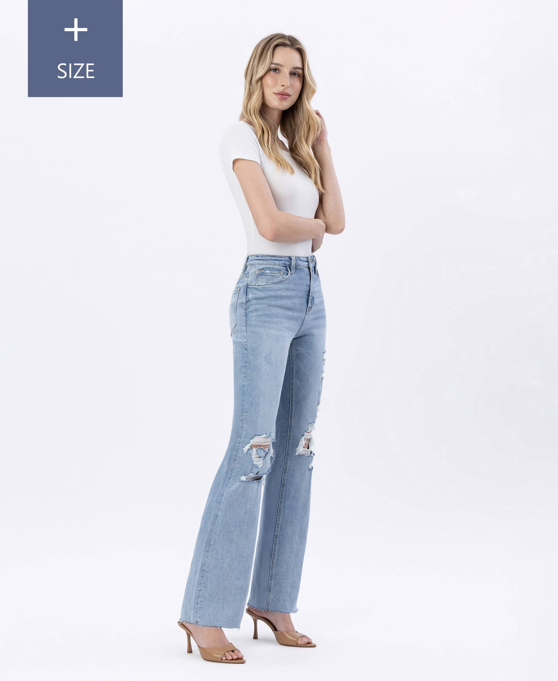 PLUS SIZE TUMMY CONTROL 90'S VINTAGE SUPER HIGH RISE FLARE JEANS