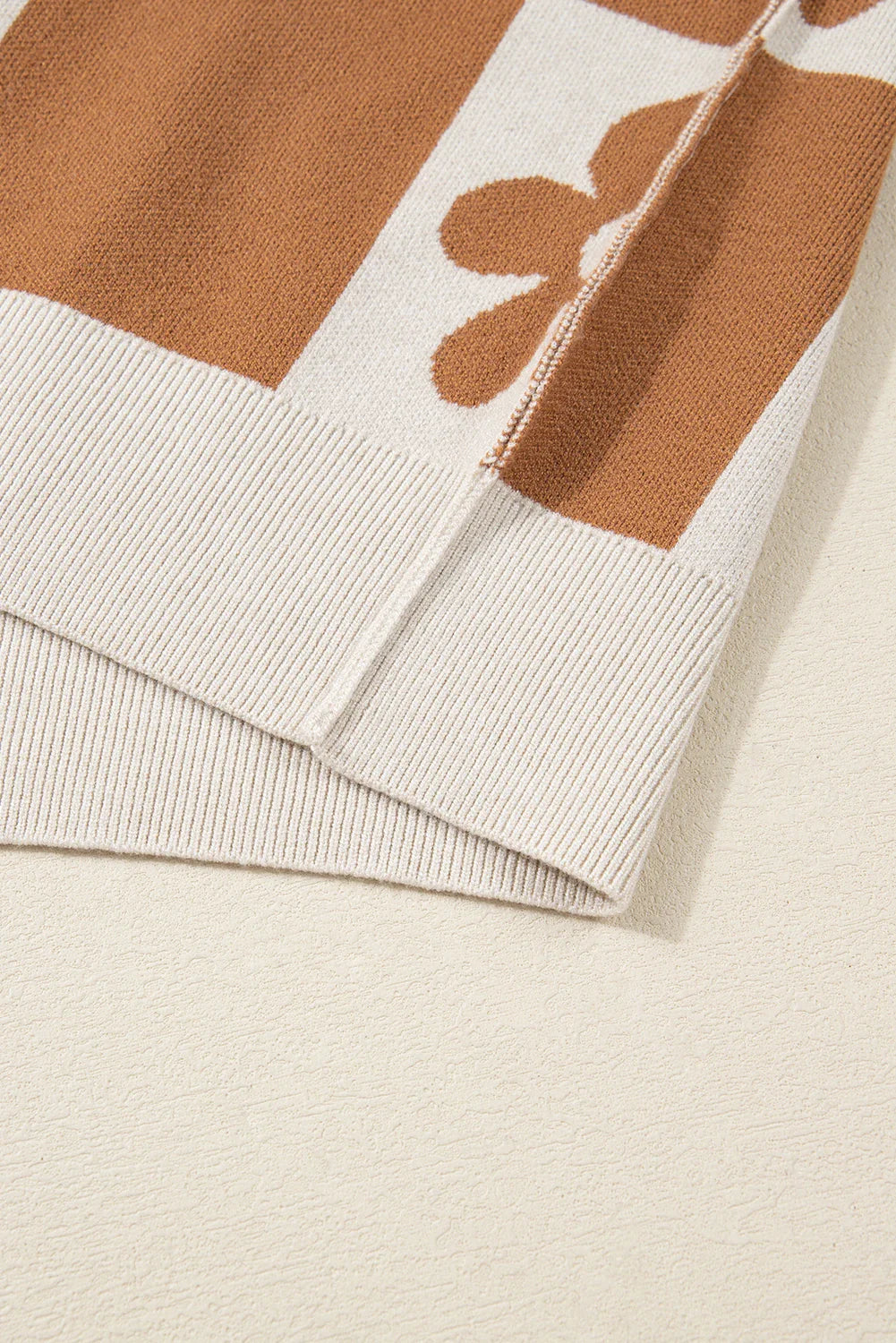 Wrap yourself in whimsy with this Sweater, featuring long bell sleeves adorned with charming checkered squares and a floral patterns. Six playful buttons cascade down the front, adding a touch of vintage fun to your cozy look. Perfect for brightening any day with a splash of floral flair and comfortable style.