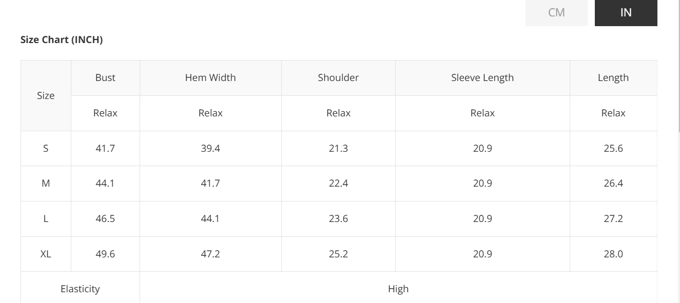 Sizes: S, M, L, XL