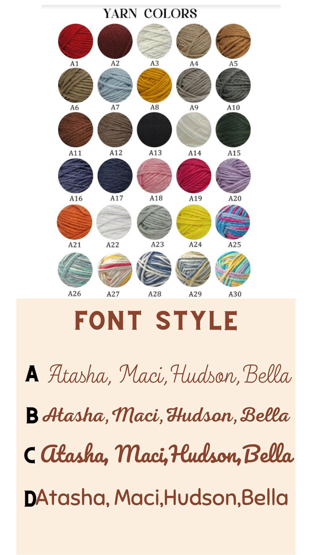 Custom pompom hats. Pick hat color, yarn color and font! *Name will be embroidered exactly how type in textbox.