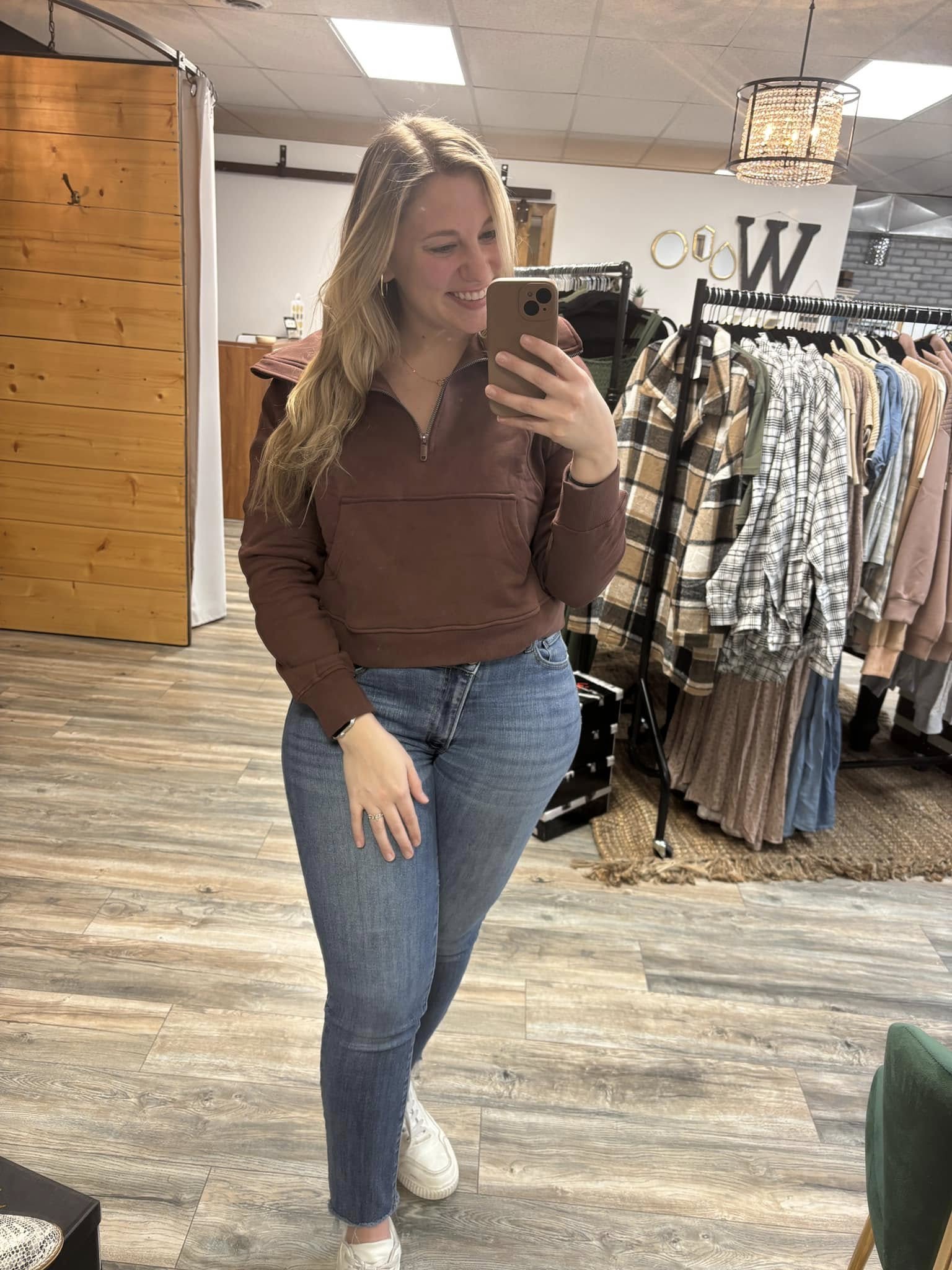 Get cozy with our 100% cotton pullover! Featuring a high neck and quarter zip, this pullover is perfect for chilly days. Keep your hands warm in the kangaroo pocket.