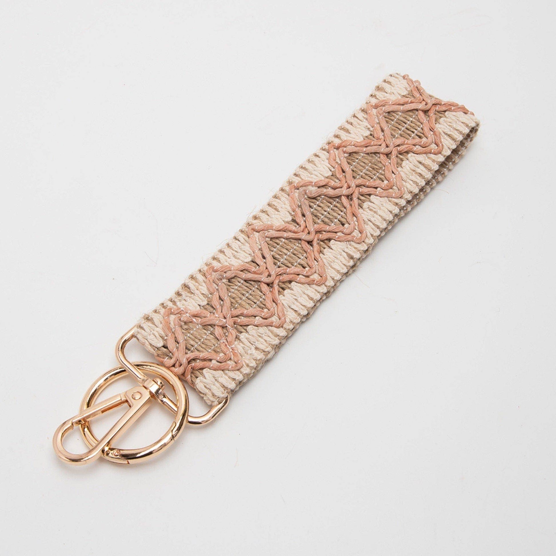 Wave Pattern Straw Wristband/Key Chain | Beige Fuchsia